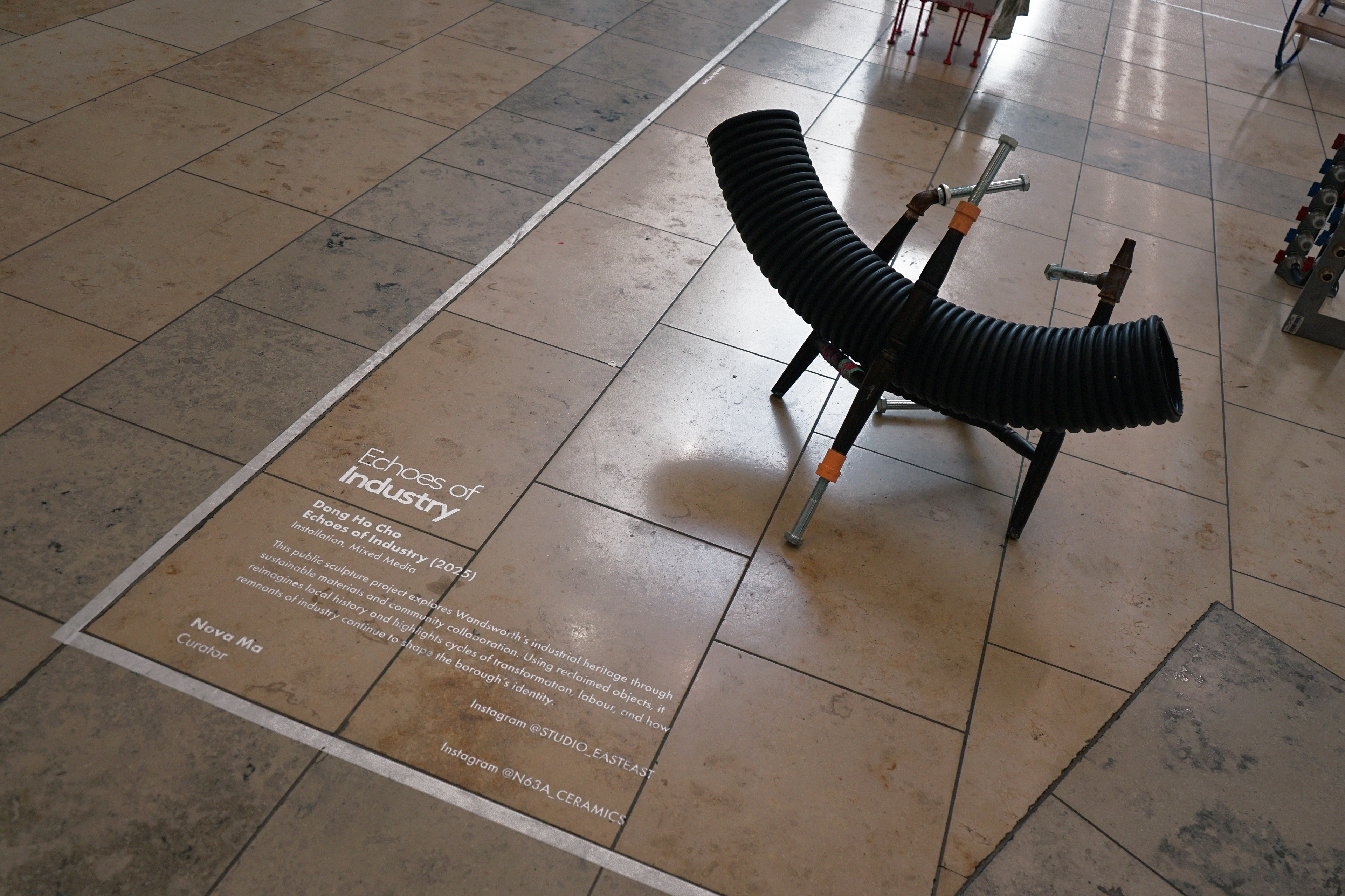 This public sculpture project expiores Wandsworth's industrial heritage through sustainable materiais and community collaboration. Using reclaimed objects, it reimagines local history and highlights cycles of transformation, labour, and how remnants of industry continue to shape the borough's identity.